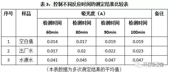 实验表明,反应时间在90min之前,溶液显色不完全,90min之后颜色趋稳定,因而,用水杨酸分光光度法测定水中氨氮时,显色时间应控制在90min之后,达到分析的精密度和准确度。