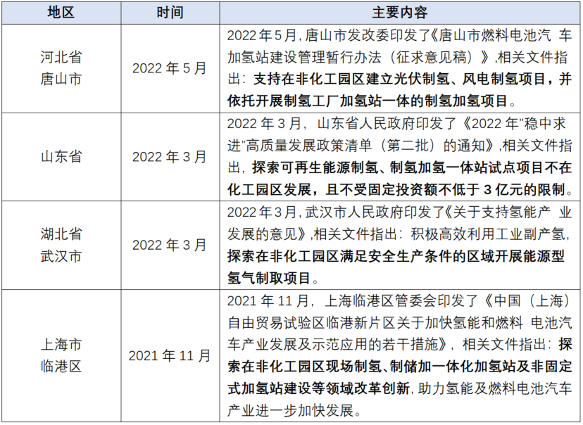 “1.支持多元氢气制取。……绿氢生产项目可不入化工园区,无需取得危化品生产许可证。”