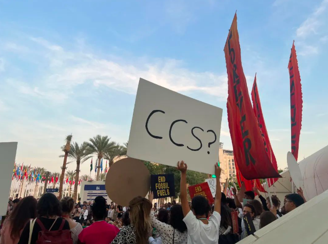 COP28现场,不少化石燃料的抗议人士质疑CCS技术。
