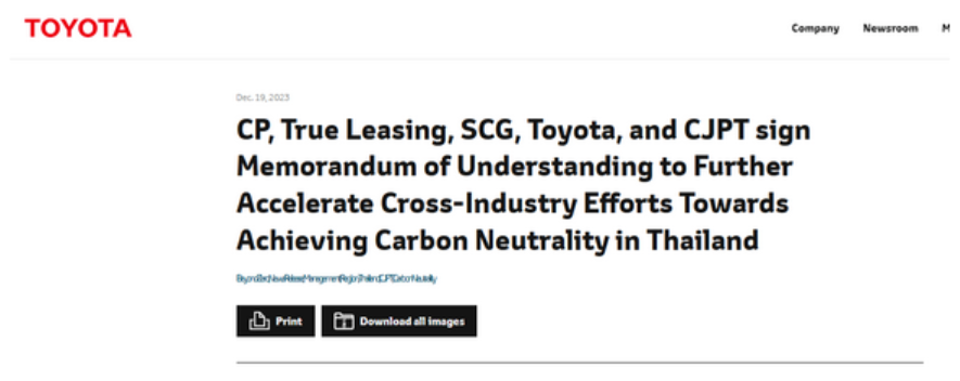 基于CP高级董事长Dhanin Chearavanont、SCG Roongrote Rangsiyopash总裁兼首席执行官与时任丰田社长丰田章男之间建立的深厚信任关系的协议;CP、TLS、SCG、丰田和CJPT一直在推进数据、移动和能源三个领域的举措。