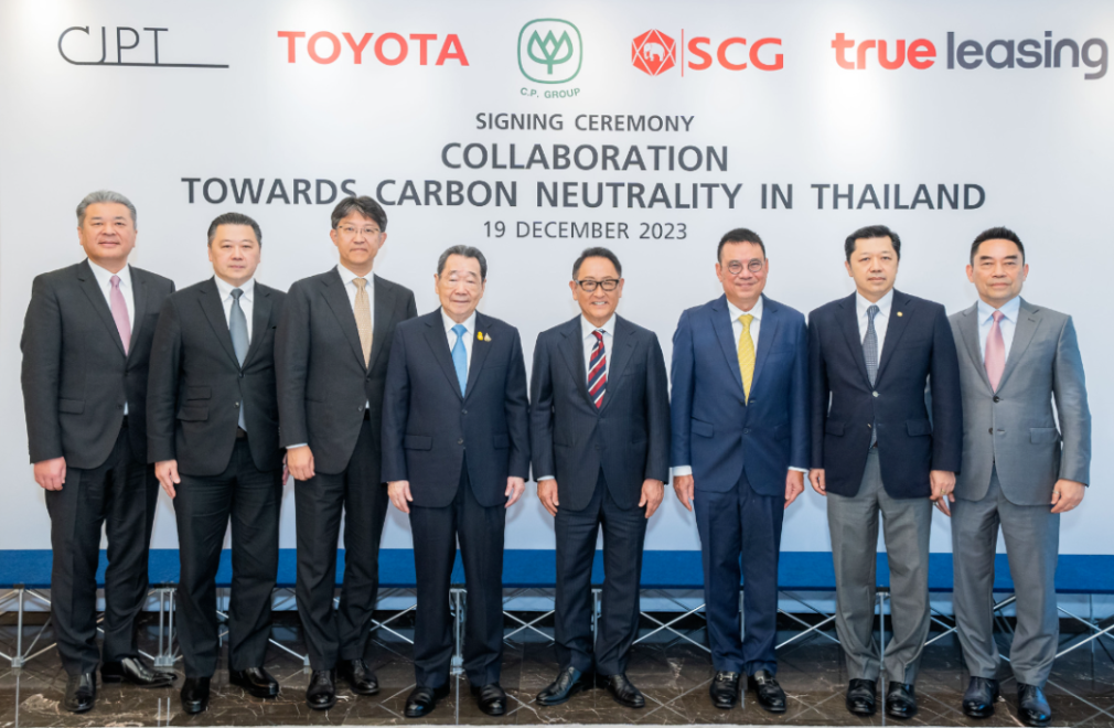 据丰田汽车官网消息 日前,Charoen Pokphand Group (CP)、True Leasing (TLS)、Siam Cement Group (SCG)、Toyota Motor Corporation (Toyota) 和 Commercial Japan Partnership Technologies Corporation (CJPT) 签署了一份谅解备忘录 (MOU),以进一步加快合作,以实现泰国的碳中和。该谅解备忘录基于丰田迄今为止共同努力取得的成就,包括CP和SCG工厂的物流效率,以及基于在泰国的使用情况引入碳中和交通。