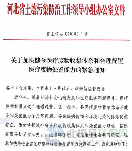 日前,河北省发布了关于加快健全医疗废物收集体系和合理配置医疗废物处置能力的紧急通知,详情如下: