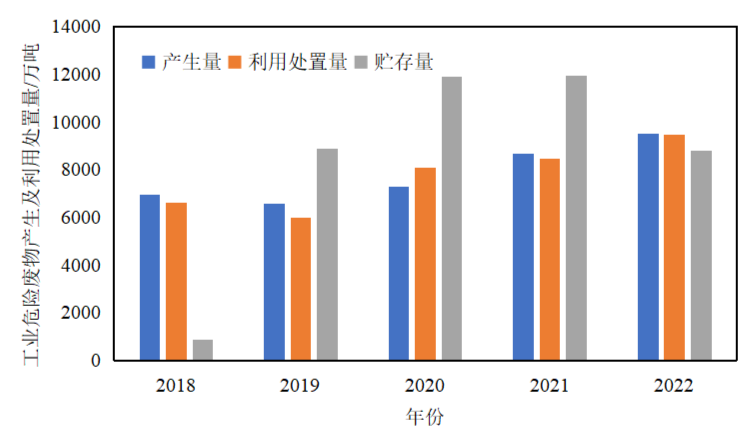 危险废物利用和处置能力明显提升。根据《中国统计年鉴》显示,2022年我国危险废物集中利用处置能力约为1.8亿吨/年,与2018年相比增加了约两倍。危险废物产生量和利用处置量在2019-2022年期间持续增长,截至2022年底全国危险废物年产生量在10万吨以上单位约有6万家。