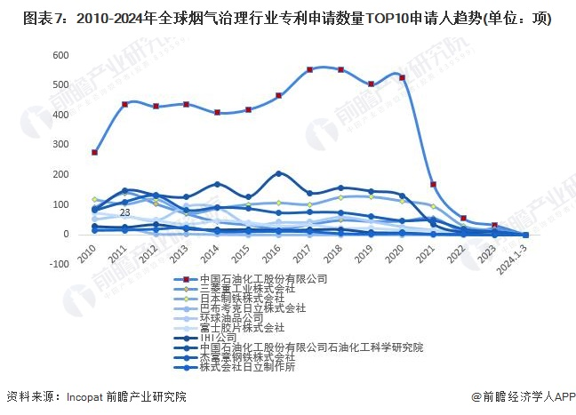 2、全球烟气治理技术申请人竞争格局