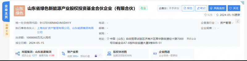 5月15日,山东省绿色新能源产业股权投资基金成立。基金主要聚焦风电、光伏、储能、氢能等新能源产业领域以私募基金从事股权投资、投资管理、资产管理等活动。