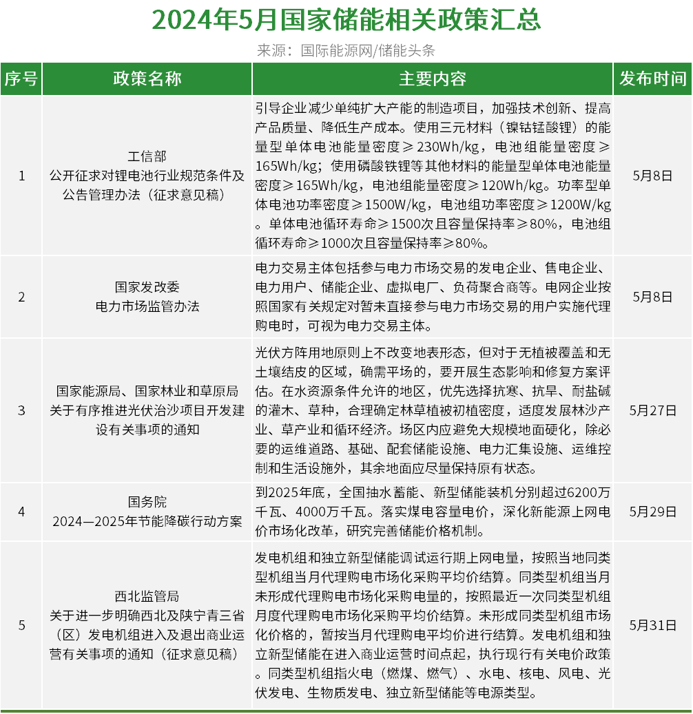 5月29日,国务院印发《2024—2025年节能降碳行动方案》(以下简称“方案”)。方案提出到2025年底,全国抽水蓄能、新型储能装机分别超过6200万千瓦、4000万千瓦(40GW);各地区需求响应能力一般应达到最大用电负荷的3%—5%,年度最大用电负荷峰谷差率超过40%的地区需求响应能力应达到最大用电负荷的5%以上。