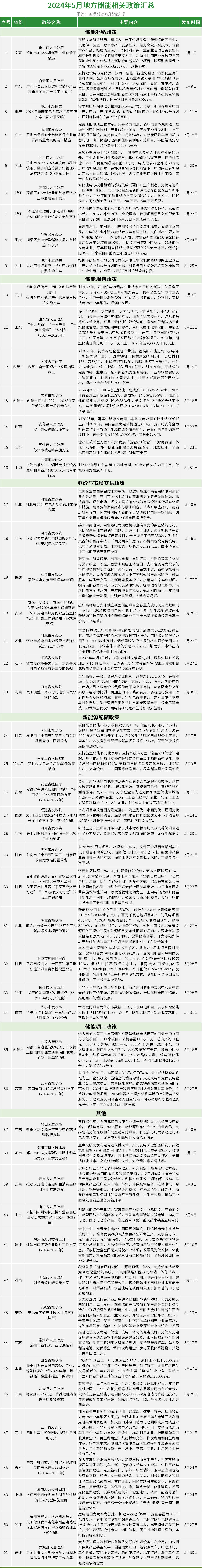 2024年5月份国家及地方共发布储能相关政策56条!其中国家出台政策5条,地方出台政策51条。根据储能政策的具体指向,地方政策中,储能补贴政策9条、储能规划布局的政策7条、新能源配储政策11条、储能参与电力市场化相关政策7条、储能项目政策2条,其他相关政策15条。