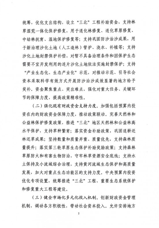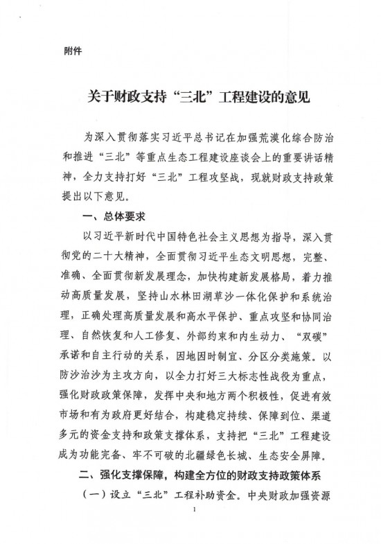 近日,财政部、国家发展改革委发布关于印发《关于财政支持“三北”工程建设的意见》的通知。