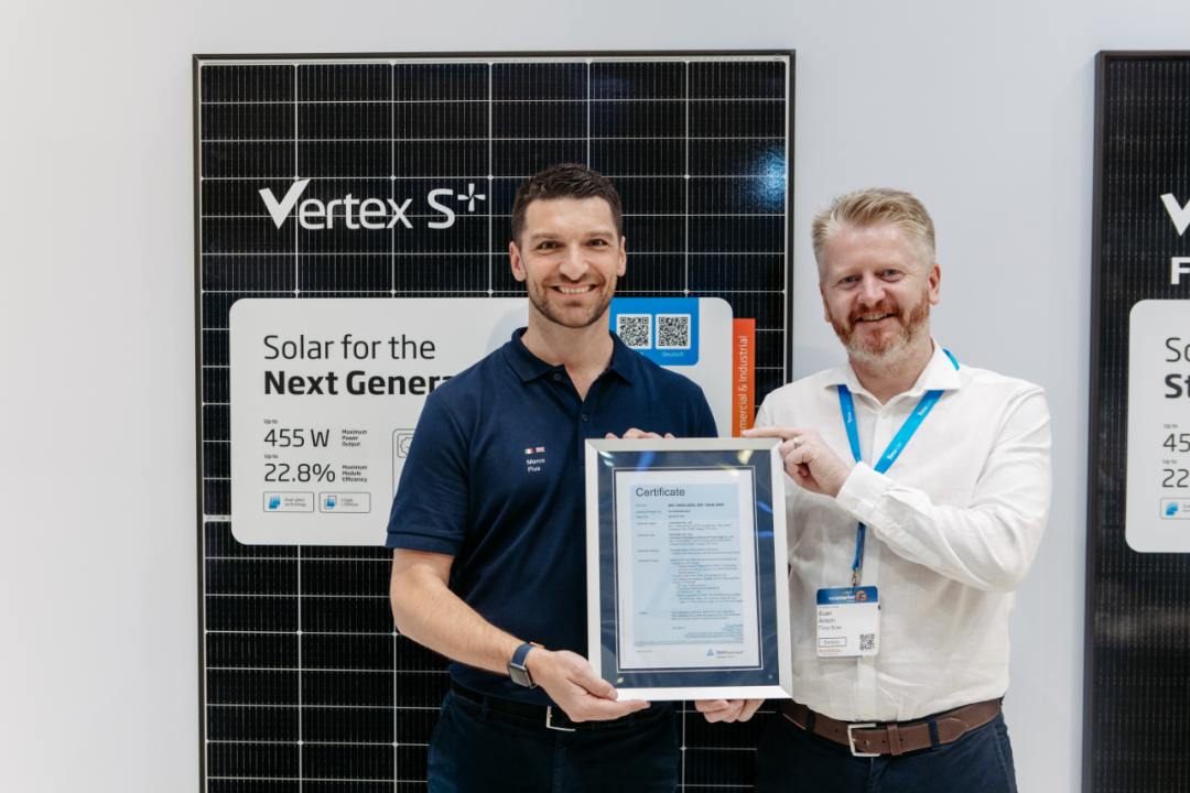 环境产品声明(Environment Product Declaration,简称EPD)基于ISO14025标准,严苛跟踪检测某一产品在全生命周期内对环境造成的影响,包括原材料获取阶段、制造加工阶段、运输阶段、产品使用阶段以及回收阶段等。TÜV莱茵对天合光能至尊N型小金刚系列组件进行了挪威及国际EPD严格核查,确认天合光能产品全面符合认证,并助力天合光能在挪威及国际EPD平台上成功完成注册。