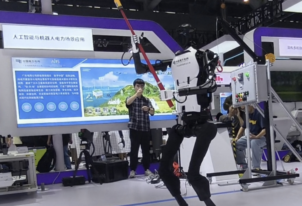 除了人形机器人,在刚刚结束的第26届中国国际高新技术成果交易会上,广东电网多种电网设备智能巡检成果集体亮相,还包括双机械臂配网带电作业机器人、巡检无人机及机库、四足巡检机器人、激光清障仪等智能装备。