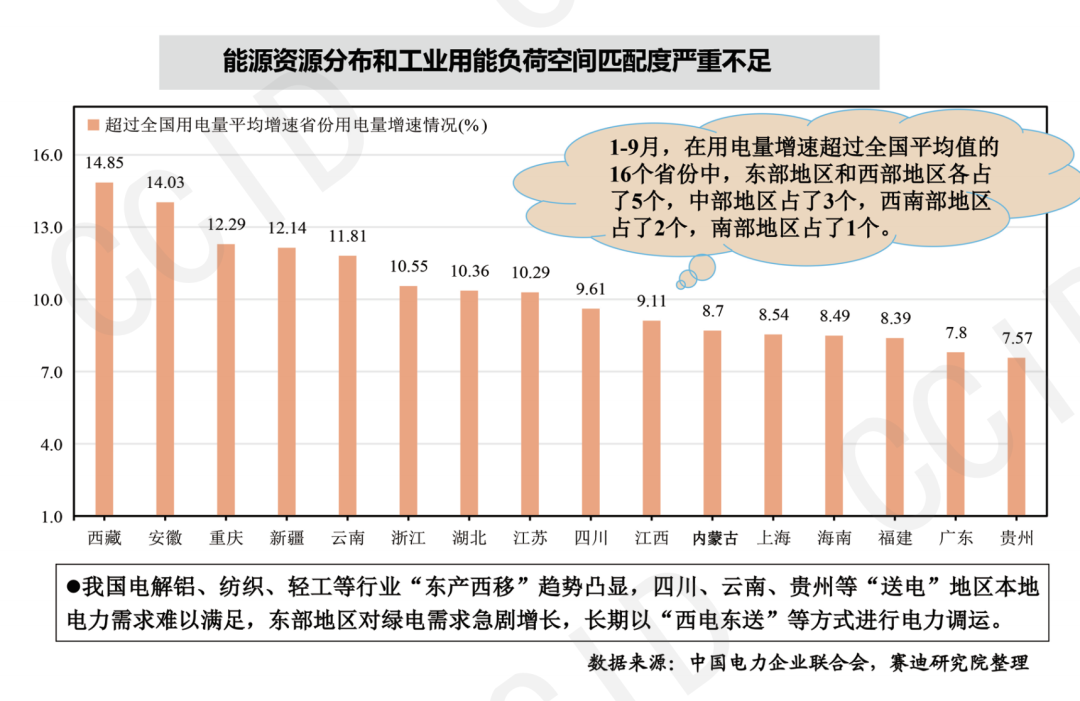(四)“西电东送”叠加“东产西移”,统筹绿电保障和产业转型难度加大。