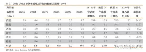 根据欧洲风能协会(Wind Europe),2025-2030年预计欧洲海风新增48GW,年均8GW,为25年装机规模的1.8倍。
