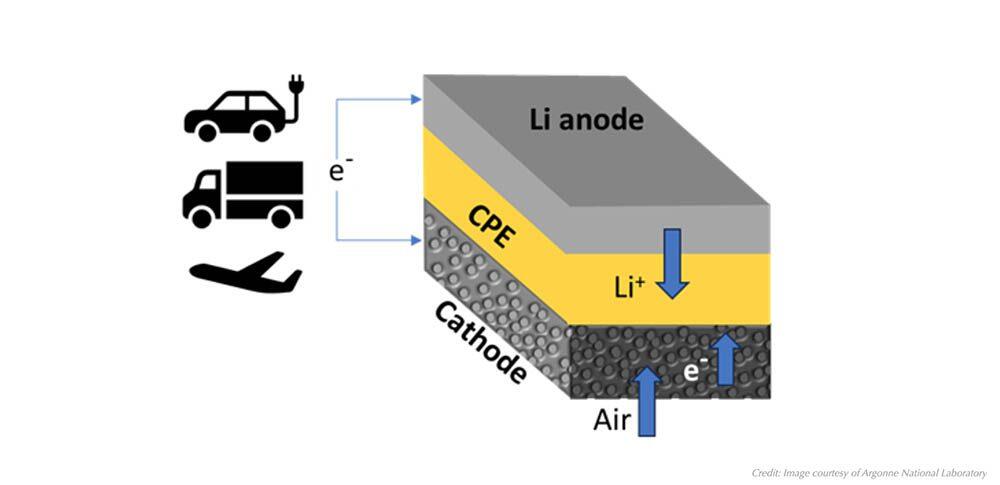 科学家们发明了一种锂空气电池,由锂金属阳极、空气基阴极和固体陶瓷聚合物电解质(CPE)组成。在放电和充电过程中,锂离子(Li+)从阳极移动到阴极,然后再返回。