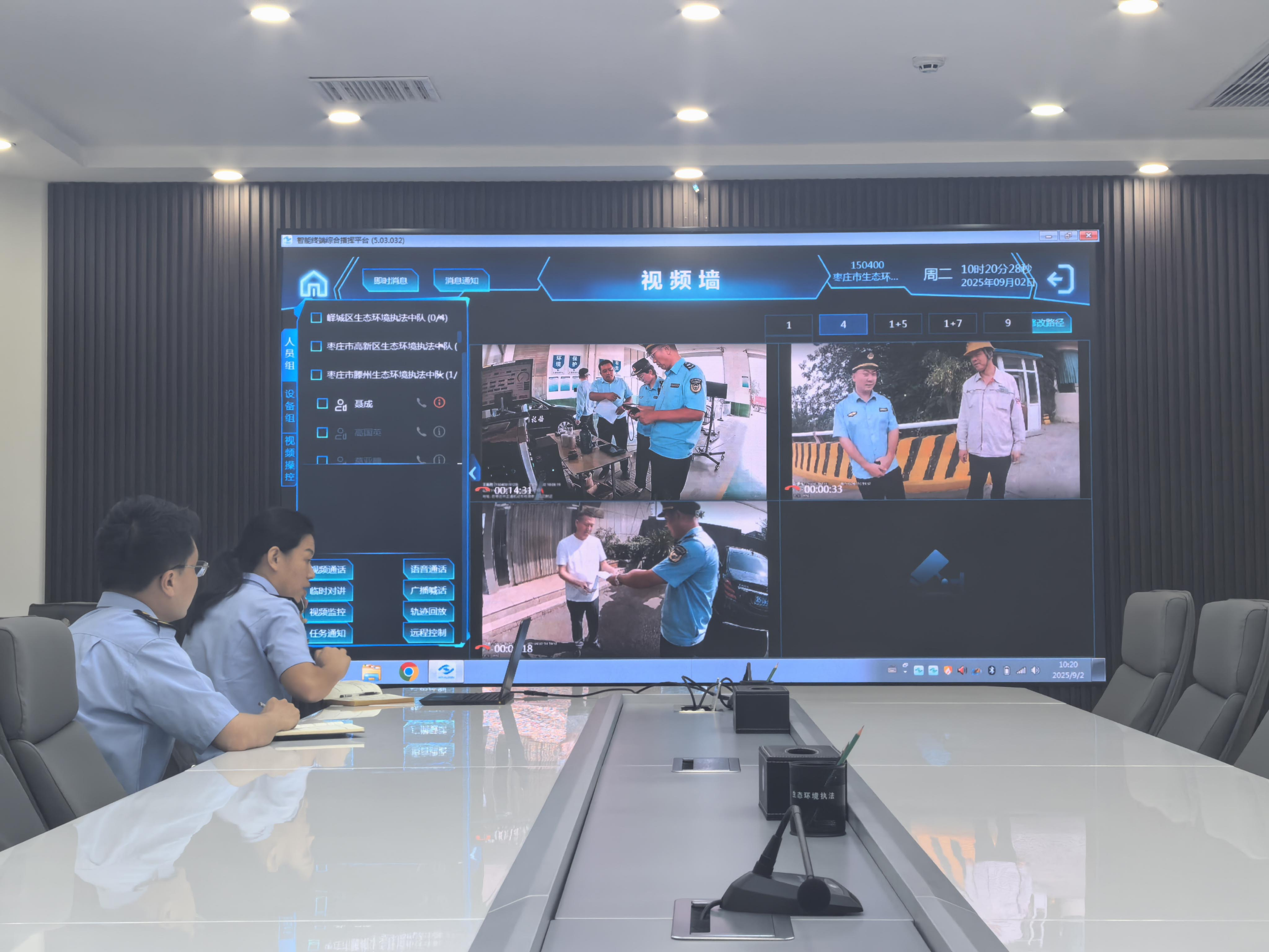 图为枣庄市生态环境局稽查人员线上随机巡查执法一线实况。