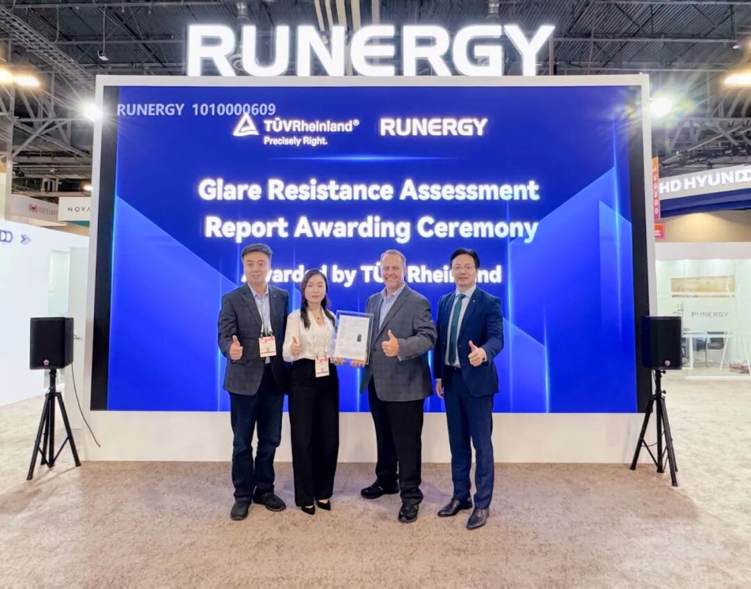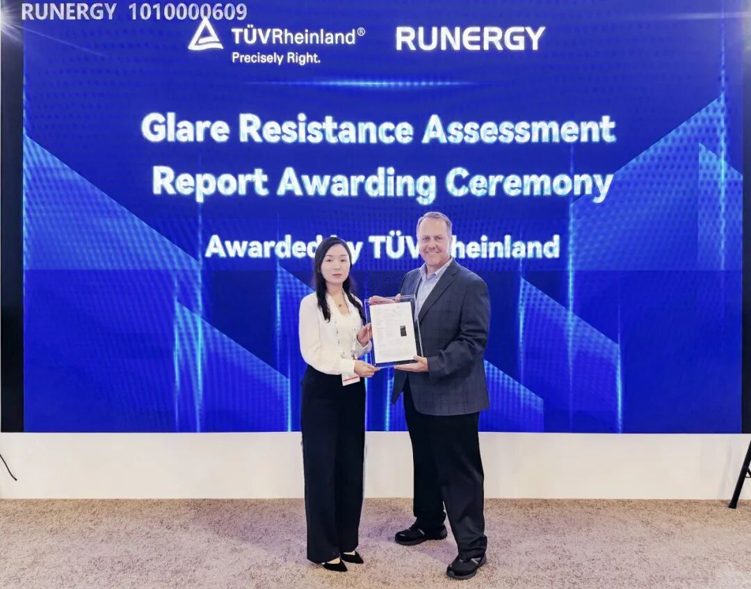 美国当地时间 2025 年9 月 9 日,在拉斯维加斯举行的 RE+ 国际可再生能源展会上,江苏润阳新能源科技股份有限公司(以下简称“润阳股份”)荣获由国际第三方检测、检验和认证机构德国莱茵 TÜV(以下简称“TÜV莱茵”)颁发的全球首份光伏组件防眩光能力测试评估报告。这一里程碑时刻,不仅彰显了润阳股份在高效光伏技术与产品可靠性上的持续突破,也代表着行业在眩光管控与安全应用领域迈出了关键一步。