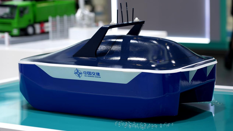 全球最大的智能环保多功能铺排船“交通建设十号”模型,引来观众围观。工作人员介绍,“交通建设十号”全长116.6米,型宽25米,其智能化作业系统实现了革命性突破,通过机械臂式充灌装置和多系统协同控制,有效降低人工成本,作业效率显著提升。其搭载的三维可视化与AR技术,将铺设精度提升至新高度。此外,在施工能力上,新型泥浆泵组使日产能跃升,适用于多种复杂水域工况。