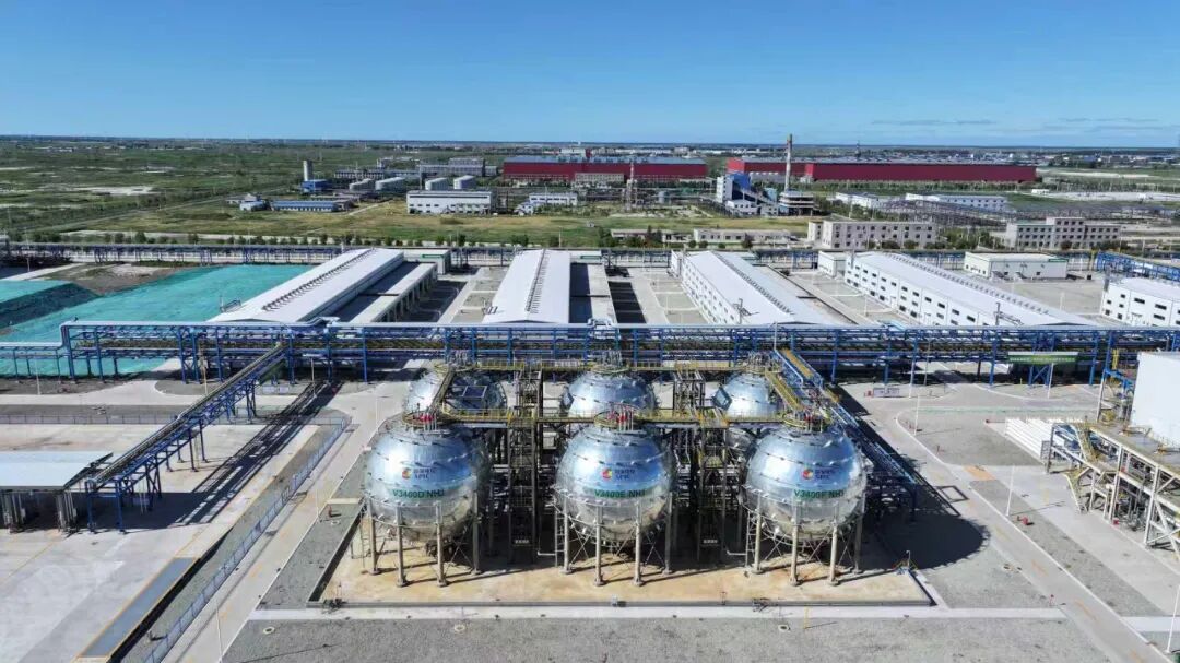 ▲国家电投大安风光制绿氢合成氨一体化项目储氨罐(国家电投供图)