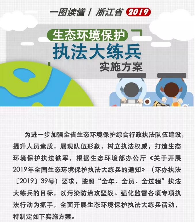 导读:日前,2019年环境执法大练兵活动已经拉开帷幕,浙江省生态环境厅也制定了《浙江省2019年生态环境保护执法大练兵实施方案》,今年污染防治攻坚战大练兵有哪些安排和要求?小编来划重点啦~
