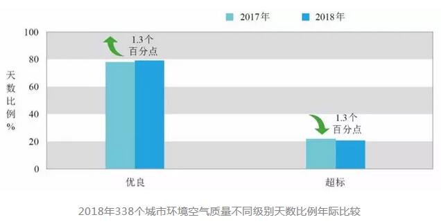 空气:338个地级及以上城市平均优良天数比例为79.3%,同比上升1.3个百分点;细颗粒物浓度为39微克/立方米,同比下降9.3%。PM10年平均浓度为71微克/立方米,同比下降5.3%。