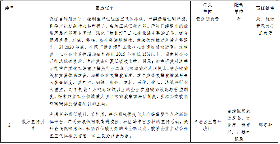 (二)制定方案,明确措施。各责任处室对照目标任务、责任分工和时限要求,针对牵头任务制定细化工作方案,明确工作措施和时间节点,加快推进各项任务落实,确保量化目标任务如期实现。各市、县(区)发展改革委(局),宁东管委会经济发展局要根据本通知要求,结合本级党委政府下达的具体目标任务,制定细化方案,切实抓好各项任务落实。