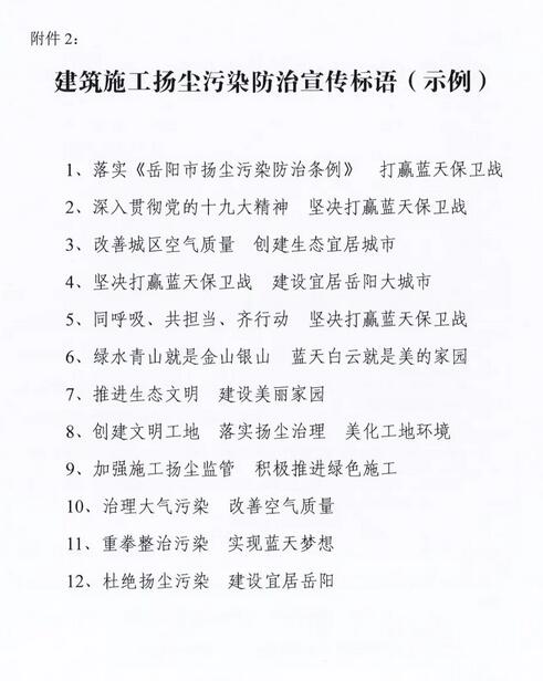 日前,岳阳发布关于进一步加强建筑工地扬尘污染防治工作的通知。详情如下: