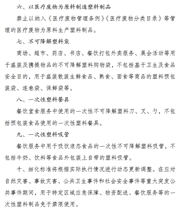 附件:相关塑料制品禁限管理细化标准(2020年版)