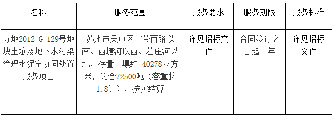 二、项目名称:苏地2012-G-129号地块土壤及地下水污染治理水泥窑协同处置服务项目