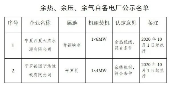 根据《国家发展改革委办公厅关于取消临时接电费和明确自备电厂有关收费政策的通知》(发改办价格〔2017〕1895号)文件精神,我委严格按照核定条件和流程,组织有关专家对吴忠市发展改革委、平罗县发展改革局申报的余热、余压、余气自备电厂进行了现场核定。经自治区发展改革委2020年第24次委务会议审议通过,现予以公示。如有意见,请于本公示公布之日起5个工作日内,将意见反馈我委。