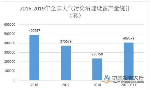 大气治理行业分析表示,2018年中国大气污染防治设备产量236750台(套),比上年减少138947台(套),同比下降36.98%;2019年中国大气污染防治设备产量333714台(套),比上年增加96964台(套),同比增长40.96%。