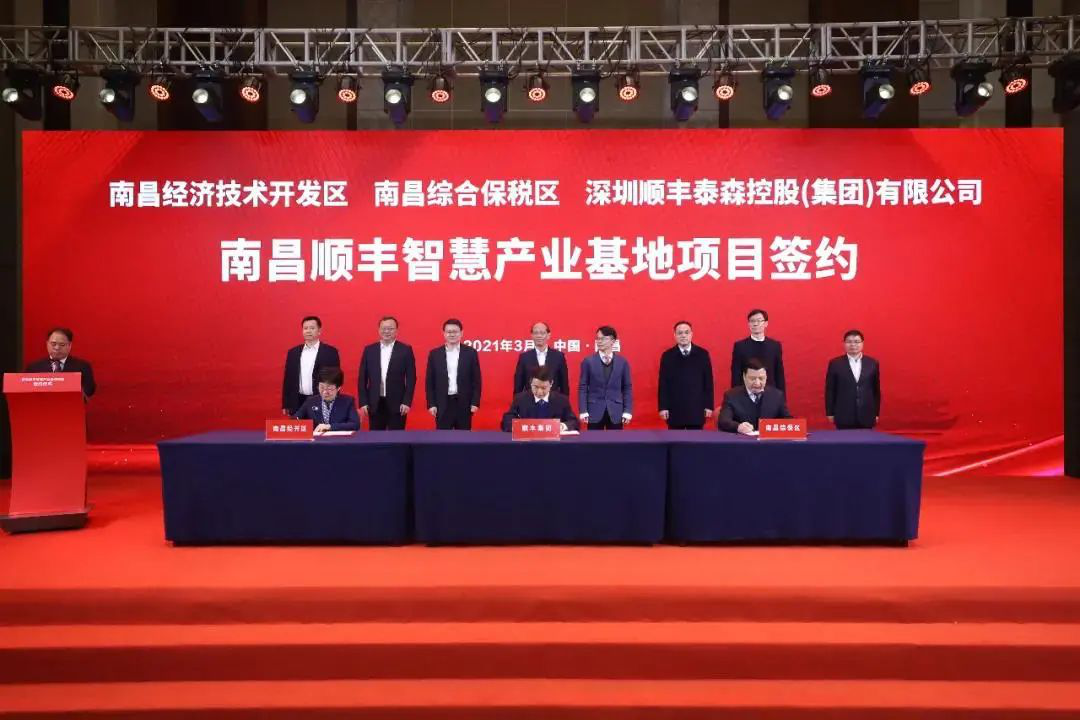3月6日,南昌经开区、南昌综合保税区、深圳市丰泰电商产业园资产管理有限公司三方就“南昌顺丰智慧产业基地项目”签署合作协议。省委常委、市委书记吴晓军,市委副书记、市长万广明会见顺丰集团首席运营官许志君一行并见证签约,市委常委、秘书长郭毅,市委常委、副市长肖云,区党工委书记赵海东出席活动,区党工委副书记、管委会主任于立山主持签约仪式。