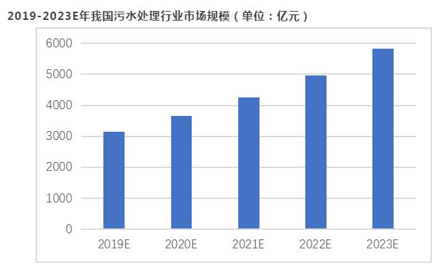 受国家政策支持、各方资本涌入、技术工艺革新等因素驱动,我国污水处理行业将持续快速发展,预计到2023年,我国污水处理行业市场规模将达到5820亿元,2019-2023年复合增长率达14.7%。