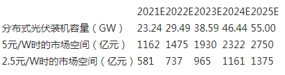 乐观情况下2021-2025年我国分布式光伏市场空间预测