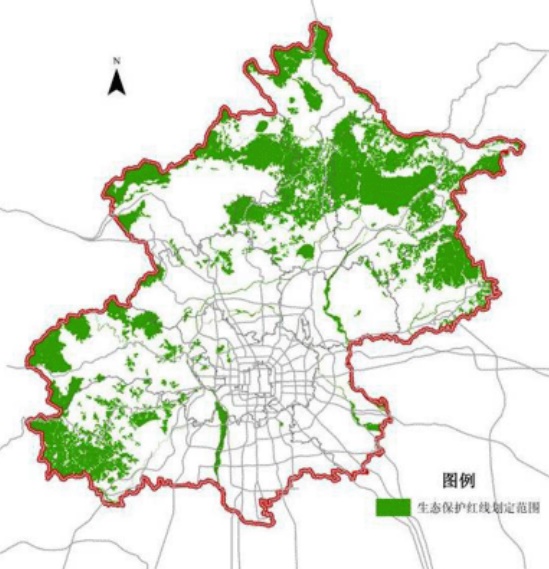 生态保护红线是指在生态空间范围内具有特殊重要生态功能、必须强制性严格保护的区域,是保障和维护国家生态安全的底线和生命线。根据《若干意见》和原环境保护部、国家发展改革委出台的技术规定,市政府组织相关部门划定了北京市生态保护红线。