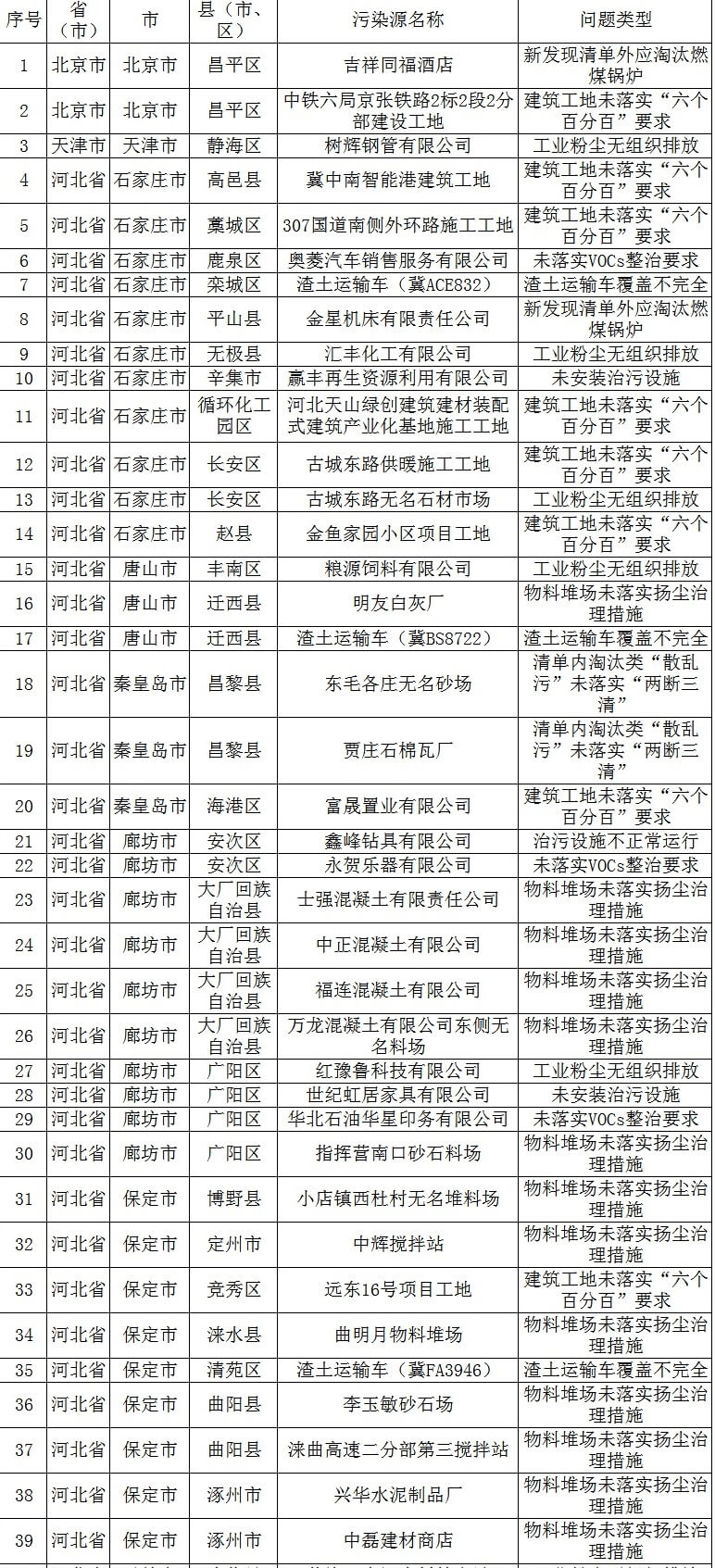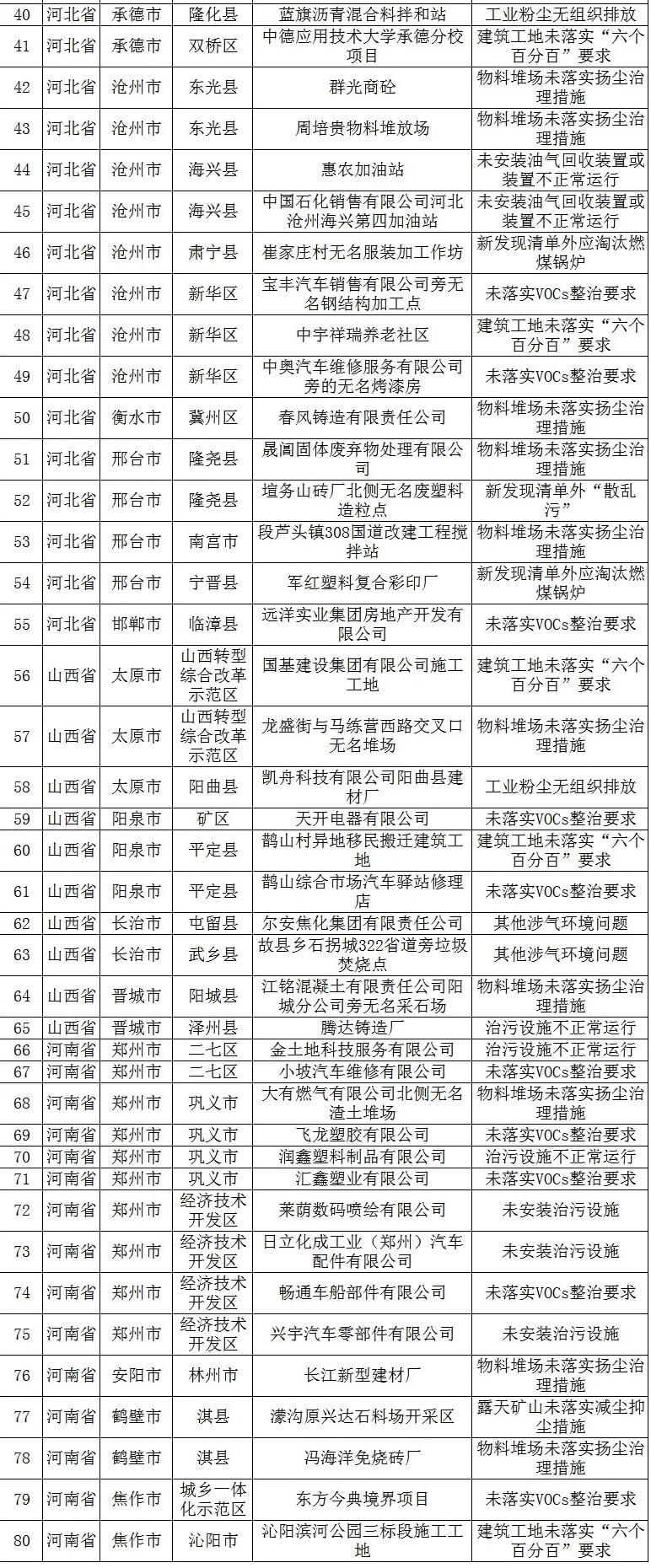 8月21日,2018-2019年蓝天保卫战重点区域强化督查工作继续开展,其中200个督查组对京津冀及周边地区的215个县(市、区)进行督查,发现涉气环境问题80个(见附件),如下: