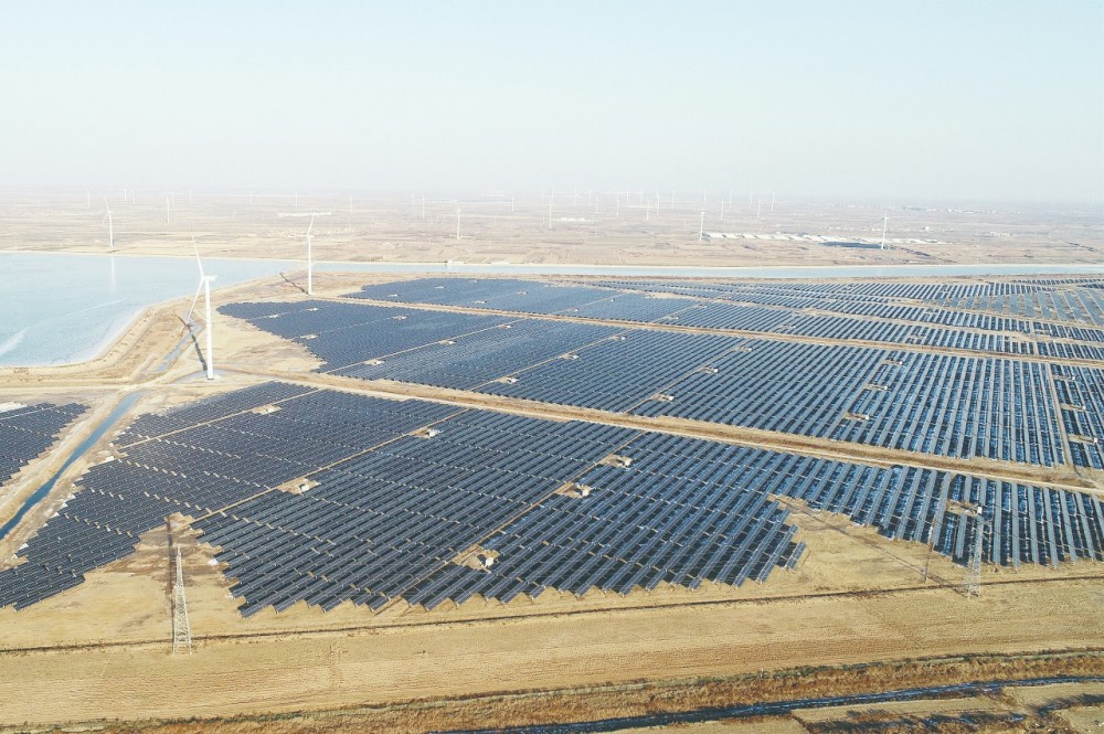 ▲位于山东滨州沾化区滨海镇盐碱滩上的风电、光伏项目