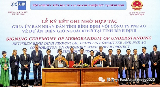 图片说明:本月21日,平定省(Tỉnh Bình Định)人民委员会主席Nguyen Ahn Tuan与德国PNE集团代表签署了一份有关合作推进辖区内的海上风电项目投资和发展合作的MOU。(照片=越南平定省人民委员会)