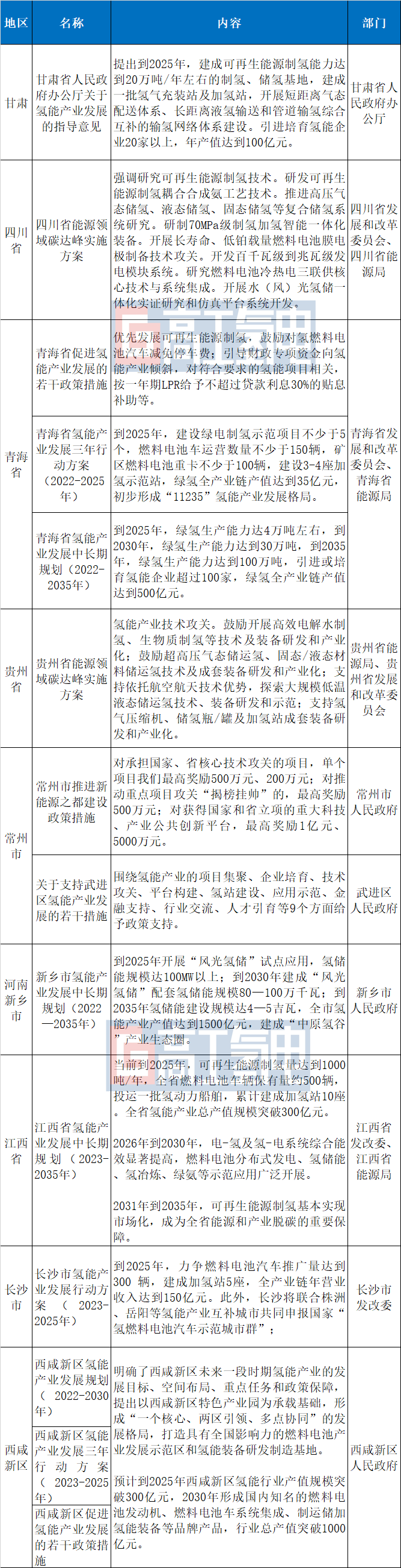 1月6日,《西咸新区氢能产业发展规划(2022-2030年)》《西咸新区氢能产业发展三年行动方案(2023-2025年)》《西咸新区促进氢能产业发展的若干政策措施》集中发布,政府发展氢能决心显现。