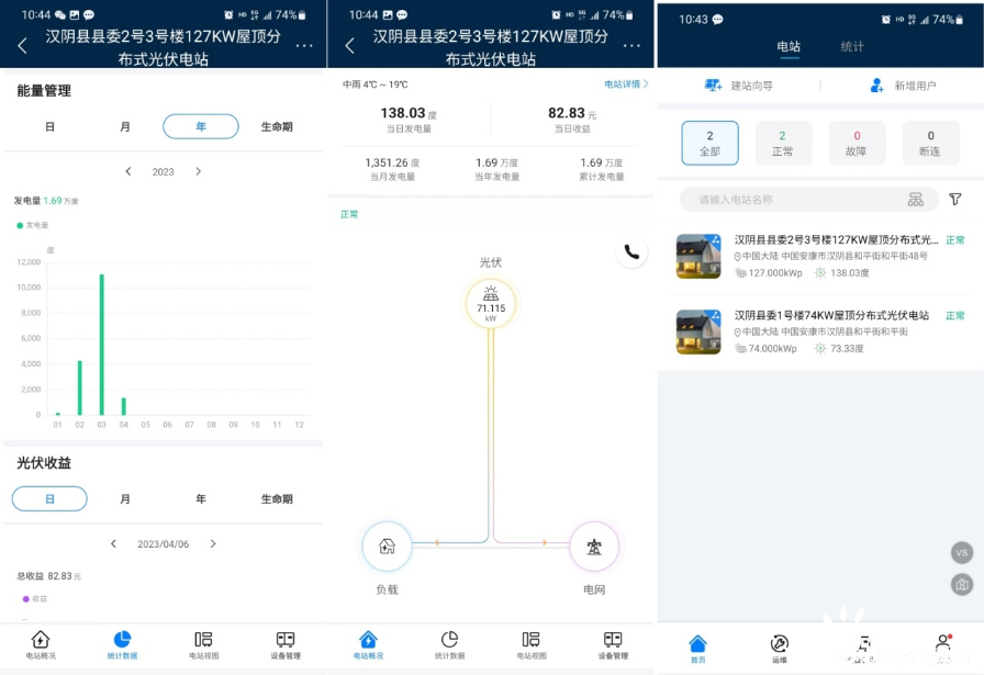 项目现场,蓝色的电池板静悄悄地趴在屋顶,“不声不响”却已将光能“默默”地转化为电能。该光伏项目分布于县委机关大院和县政府机关大院各单位屋顶,建设面积约为2730平方米。在光伏发电能耗监测室和手机APP上,显示着当日发电量、累计发电量、累计二氧化碳减排等数据,一天中各个时段发电量动态更新。