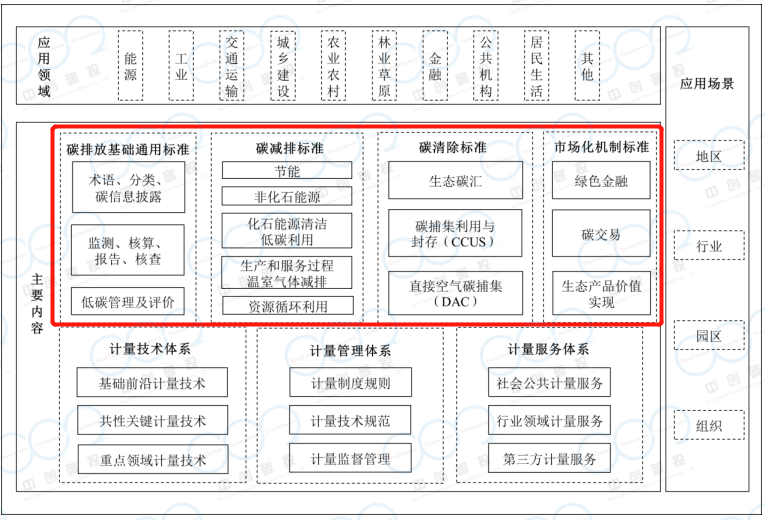 以上述四个子体系为基础,可以为重点行业和领域碳达峰碳中和工作提供协调、全面的标准支撑。