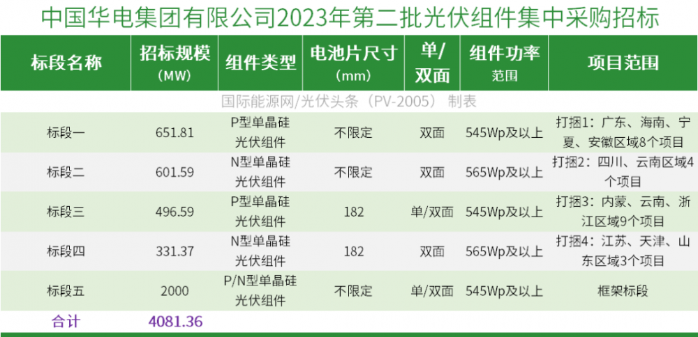 5月11日,中国华电集团有限公司发布2023年第二批光伏组件集中采购招标公告。