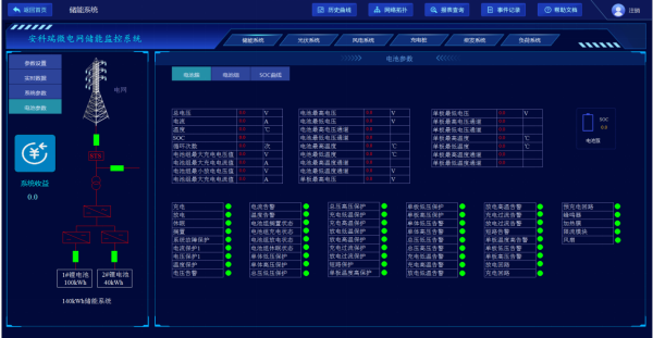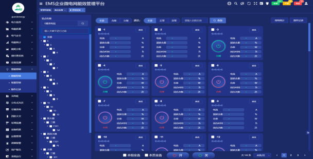 监测储能系统、电池管理系统(BMS)和储能变流器(PCS)运行,包括运行模式、功率控制模式,功率、电压、电流、频率等预定值信息、储能电池充放电电压、电流、SOC、温度,根据企业峰谷特点和电价波动以及上级平台指令设置储能系统的充放电策略,控制储能系统充放电,实现削峰填谷,降低企业用电成本。