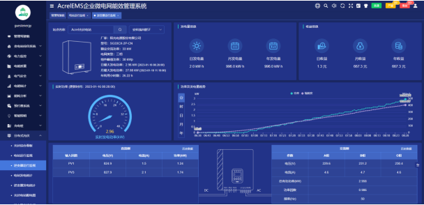 监测企业分布式光伏电站运行情况,包括逆变器运行数据、光伏发电效率分析、发电量及收益及碳减排分析,保障分布式光伏电站稳定可靠运行。