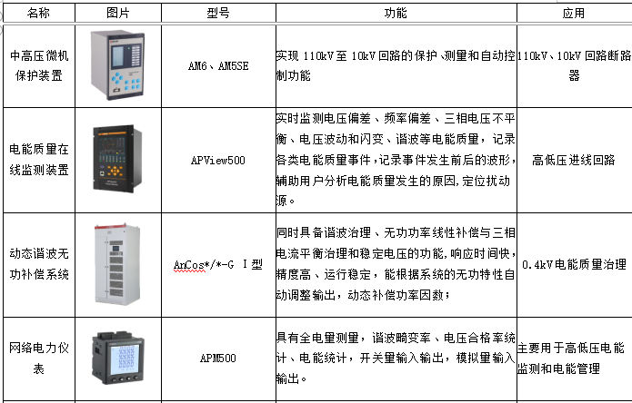 安科瑞针对企业能源管理数字化系统除了软件外,还具备现场传感器、智能网关等设备,组成了完整的“云-边-端”数字化体系,具体包括高低压配电综合保护和监测产品、电能质量在线监测装置、电能质量治理、照明控制、新能源充电桩、电气消防类解决方案等,可以为企业能源管理系统建设提供一站式服务能力,部分设备见表1。