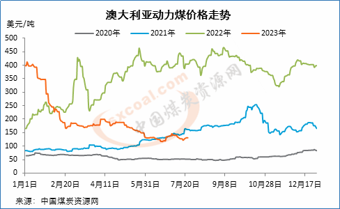 由于亚洲煤炭消费者进口需求疲软,预计价格将进一步下跌,尽管6000大卡动力煤价格维持在130美元/吨左右,但仍然面临较大压力。截止7月21日,纽卡斯尔港动力煤价格为131美元/吨,较之前一周上涨3.7美元/吨,较前一月上涨13.8美元/吨。
