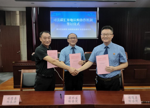 近日,旌德县人民检察院、旌德县林长办与南京市溧水区人民检察院联合签订《“司法碳汇异地认购”生态检察机制》,通过建立林业碳汇案件办理协作配合机制,加强林业碳汇生态修复工作的探索,不断提升生态治理法治化水平。