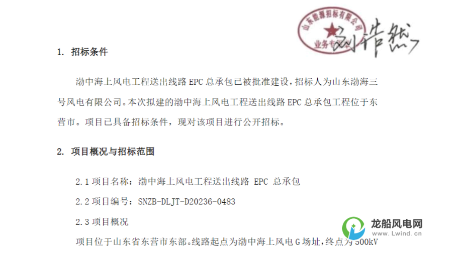 9月25日,山东能源集团电子招标投标交易平台发布《渤中海上风电工程送出线路EPC总承包招标公告》。