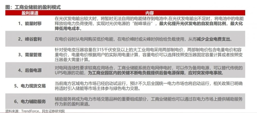 工商业储能的6种盈利模式 来源:民生证券研究院